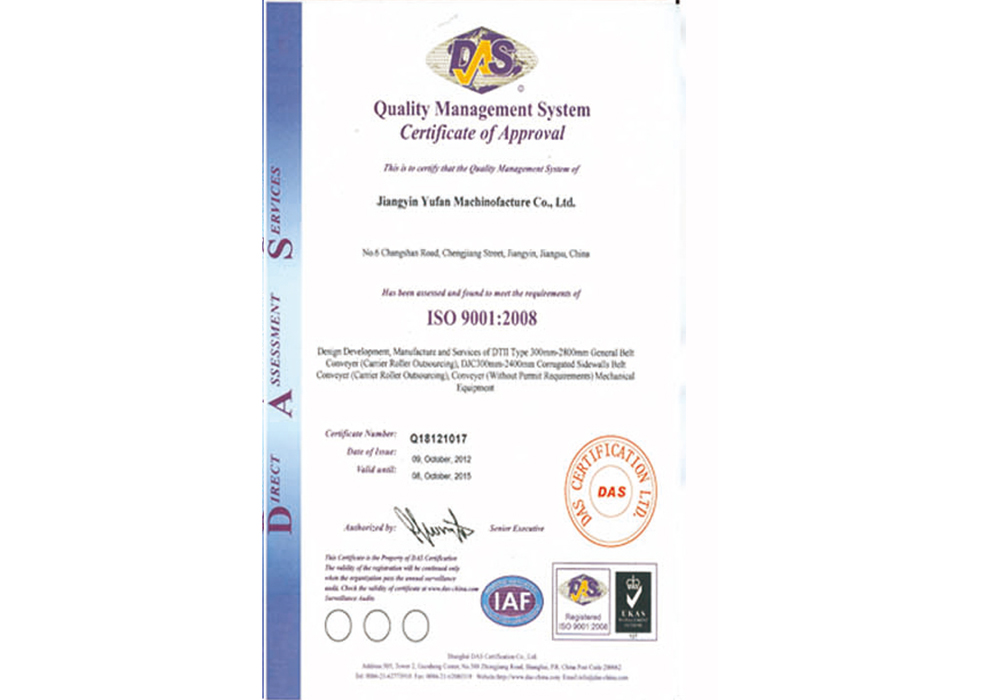 质量管理体系认证证书